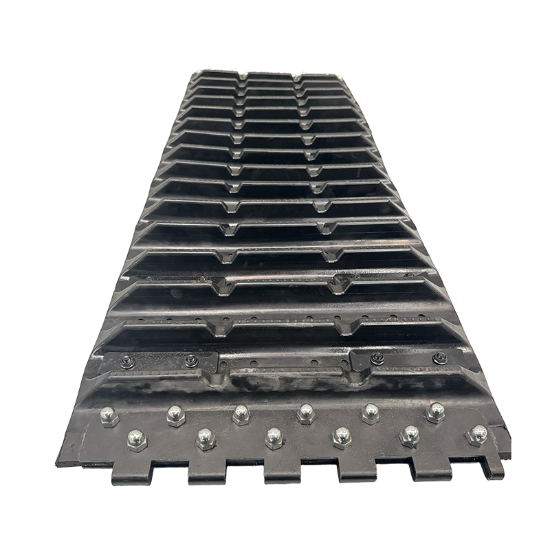 Proporcione un rendimiento antideslizante y de agarre: la superficie de la capa de outsourcing generalmente está diseñada con una variedad de patrones o dientes, como patrones horizontales comunes, patrones verticales, patrones de espiga, etc. Estos patrones pueden aumentar la fricción entre la vía y el suelo, para que el equipo pueda mantener una buena capacidad antideslizante y de agarre en diferentes terrenos y condiciones de trabajo, para garantizar la estabilidad y la seguridad de la conducción.